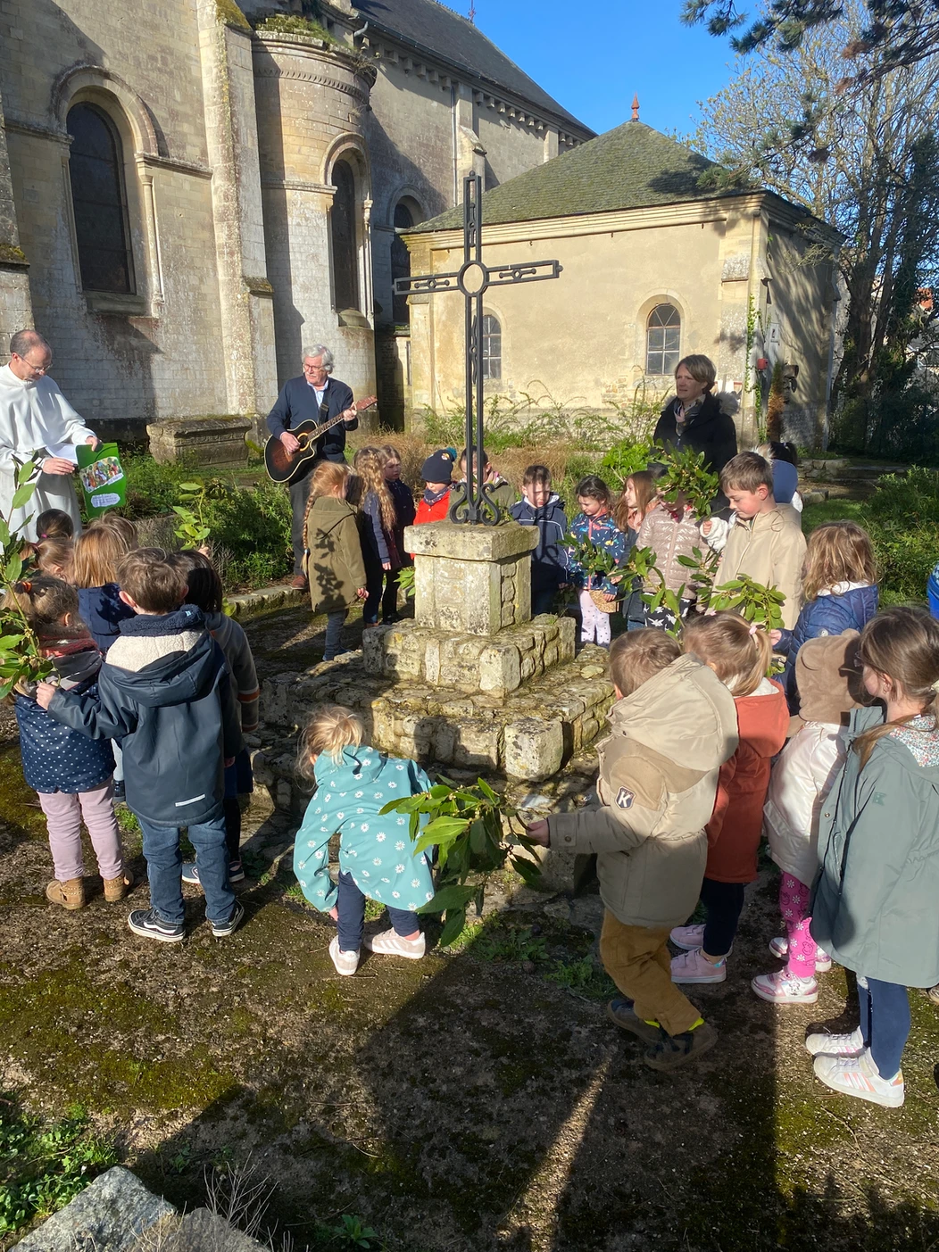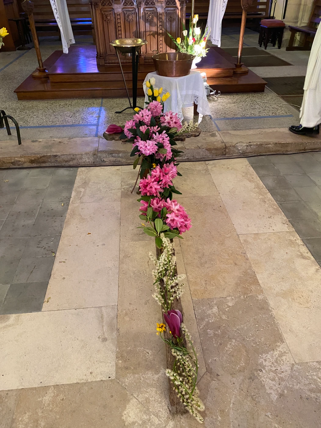 Nous avons célébré Pâques ce mardi en nous rendant à l'église. En cheminant du jardin jusqu'à l'autel, nous avons remémoré les rameaux, la Cène, la Passion puis la résurrection.